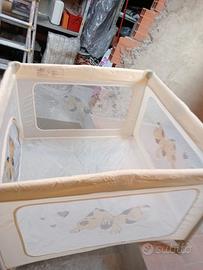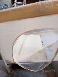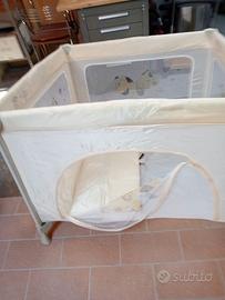 Vendo praticissimo lettino da viaggio della TecTake, colore beige/marrone con simpatiche stampe di cagnolini sui lati in rete. Pratico: Apertura laterale con zip per permettere ai bambini più grandi di entrare e uscire da soli in sicurezza. Salvaspazio: Si chiude in pochi secondi e diventa compattissimo. Inclusa la borsa originale per il trasporto. Dettagli tecnici: Dimensioni aperto: circa 96*96 Adatto fino a 36 mesi Materiale lavabile e resistente.