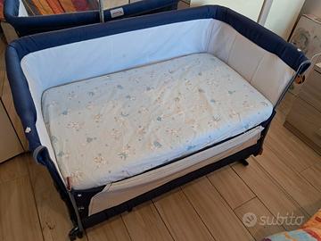 Lettino e dondolo per neonati Next to me della Zibos usato poco e in buone condizioni. Sicuro per far dormire il neonato nei primi mesi attaccato al letto dei genitori e per far addormentare facilmente con l'effetto dondolo. Si regola anche in altezza. Presenta solo due difetti: una macchia e la zip destra che non si chiude, ma non ne compromette la funzionalità e la sicurezza. Regalo anche due materassi, uno macchiato che può essere usato come rialzo, un altro in ottime condizioni e un set lenzuola. Il Next to me vi sarà dato dentro la sua sacca ma senza le istruzioni, che potete reperire facilmente on line.