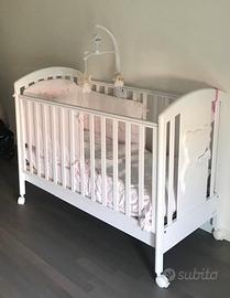 Lettino + fasciatoio modello azzurra funky con materasso, paracolpi e piumone. Sponde regolabili in altezza, guaina antimorso sul bordo sponde e ampio cassettone. Fasciatoio con vasca per bagnetto, 3 ampi cassetti, 4 ruote con freno. Entrambi come nuovi vendo per inutilizzo