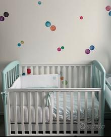 Lettino e fasciatoio con vaschetta interna per bagnetto. Colore: bianco e salvia. Marca: cuoricini. Misure letto: 132x69x110. Misure fasciatoio-bagnetto: 76x48x90