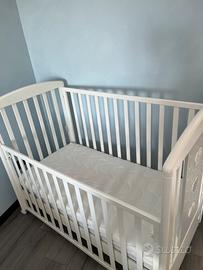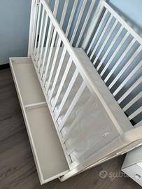 Anche la rete è regolabile a due altezze, per consentire un pratico uso anche quando il bimbo è neonato. Presente anche un ampio cassetto inferiore, suddiviso in due scomparti, e ruote gommate antigraffio.