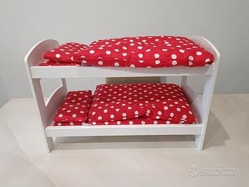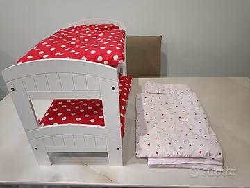si vende lettino in legno e fasciatoio per bambole completo di accessori come in foto.