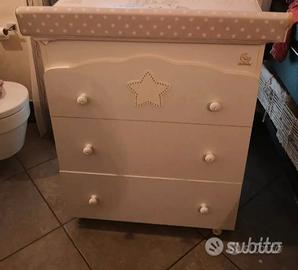 Italbaby - stessa stella con strass per entrambi Fasciatoio 3 cassetti e vaschetta Lettino con sbarra laterale che scende. Materasso e cuscino incluso piumino - copripiumino - paracolpi stesso motivo incluso Cerata con angoli inclusa ora è ancora montato - possibilità di visione Ritiro a mano