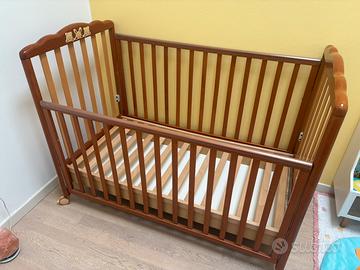 Lettino con altezza regolabile, spondine abbassabili e comodo cassetto portaoggetti.