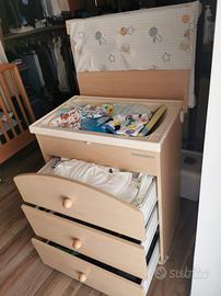 Il fasciatoio ha 3 cassetti + 1 cassetto sotto la vaschetta per il bagnetto del bimbo.
