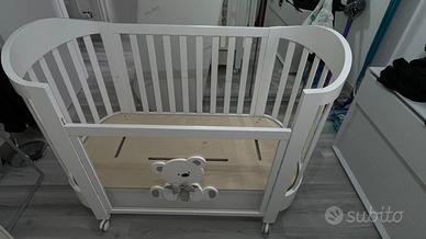 Lettino Ovale Tato Erbesi realizzato in legno massello di faggio, è perfetto per accogliere il neonato sin dai suoi primi giorni. La sponda centrale si può regolare in altezza e permette al genitore di prendere facilmente il neonato dal lettino. L 134,5 cm P 67 cm H 94,5 cm