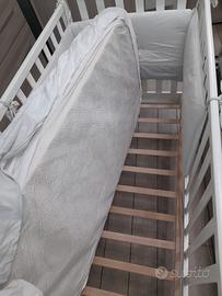 Lettino Erbesi orsetto vernice atossica spigoli arrotondati Ampio e comodo cassetto ruote piroettanti di cui due con freno Rete materasso a doghe regolabile in due posizioni possibilità di abbassare entrambe le sponde. Materasso antisoffoco e antiacaro incluso. Set paracolpi e copripiumino coordinati inclusi.