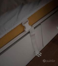 Dotato di ruote con freno, sponda rimovibile (come da foto), altezza del piano materasso regolabile e cinghie incluse per accostarlo al letto in modalità “next to me”.