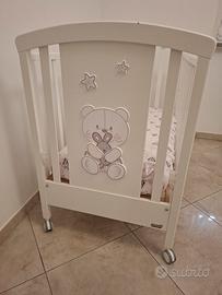 Lettino culla Erbesi bianco utilizzato pochissimo (come nuovo) comprensivo di materasso in regalo copridoghe, paracolpi, piumino con copripiumino