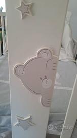 Vendo lettino Erbesi orsetto come nuovo, completo di paracolpi e trapuntina tutta in coordinato, cassettiera sotto al letto, altezza del letto regolabile in base all'alzetta del bambino/a, e sponde alza e abbassa con un semplice gesto. In aggiunta materasso Pali e riduttore per poterlo usare anche dopo i primi mesi.