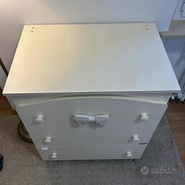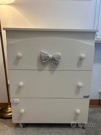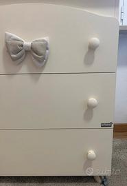 Lettino Erbesi Lilli (struttura, doghe, cassettone e set piumone e paracolpi originale sfilabile) + fasciatoio (privo di materassino superiore)
