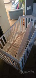 Lettino erbesi con materasso antisoffoco e antiacaro, cassetto a due scomparti e cuscino.