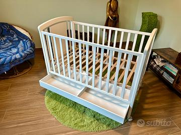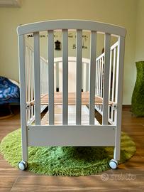 Vendo lettino culla Erbesi colore bianco tortora, utilizzato neanche per un mese in quanto nostro figlio dormiva solamente con noi nel nostro letto. Unico difetto, come visibile in foto allegata, è presente nel bordo della struttura del cassetto. Il lettino culla ha una struttura in legno massello di faggio, con cassetto e rete a doghe regolabile in altezza. Alla base della struttura ha 4 ruote piroettanti con gomma antitraccia di cui due con freno. Entrambe le sponde sono mobili con il sistema di movimento secur-baby azionabile in due movimenti susseguenti. Le dimensioni del lettino culla sono: lunghezza 131,5 cm x larghezza 72,5 cm x altezza 104 cm. Acquistato alla Prenatal di Rimini in data 06/04/2024, come da foto allegata. Per qualsiasi eventuale dubbio e/o chiarimento non esitate a contattarmi.