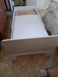 Per conto di mia cognata vendo per inutilizzo lettino estensibile bimbo, da 1 a piu o meno 6 anni, ideale per passaggio da lettino o culla da neonati. Presenti piccoli segni di usura dovuti al tempo. Molto versatile e facile da montare o variare di dimensione, completo di viteria, doghe in legno ( per entrambe le dimensioni), materasso per misura piccola e settori per completamento (misura grande).