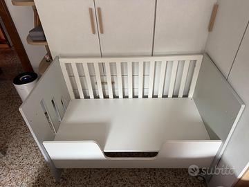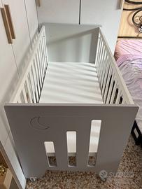 Vendo, culla/lettino evolutivo che segue la crescita dal neonato al bambino, marca Alondra modello Omni 5 in 1, in buone condizioni generali. Alondra è un prodotto di altissima qualità, il lettino Omni 5 in 1 è trasformabile in varie opzioni e cresce con il bambino: può essere utilizzato come lettino con sponde, lettino senza sponda (stile Montessori), divanetto e anche come scrivania. Acquistando a parte l’apposito kit, può essere utilizzato anche in modalità co-sleeping. Una soluzione pratica e duratura che accompagna diverse fasi della crescita! Condizioni buone, con normali segni di usura. Segnalo una piccola scrostatura in un punto del pianale, ma girandolo non dà alcun fastidio né influisce sull’utilizzo o sulla sicurezza. I segni più evidenti sono presenti in alcune foto reali del prodotto. Presente anche il paracolpi, il lettino è già stato smontato causa mancanza di spazio. Lo vendo così com’è: l’ho acquistato a mia volta da un’altra signora, ma purtroppo non entra negli spazi della camera. Prezzo: 180,00 nuovo costa circa 700,00. Consegna a mano in Bergamo e provincia o Monza Brianza e provincia.