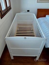 LETTINO EVOLUTIVO 140x70 in legno Essential East Cost colore bianco , materasso 140x70 MARCAPIUMA Teddy altezza 12 cm rivestimento antibatterico, sfoderabile, antiacaro, traspirante