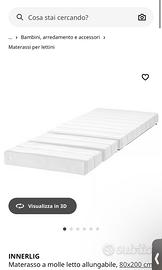 Vendo lettino evolutivo ilkea ancora imballato, comprato quest’anno, compreso di struttura, doghe e materasso a molle evolutivo per le varie dimensioni del letto.