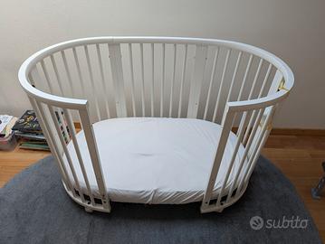 Colore bianco, in perfette condizioni e completo di materasso realizzato su misura, salva materasso e 2 lenzuola con angoli Bamboom.