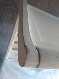 Vendesi set completo per la nanna, ideale per chi cerca qualità e robustezza senza rinunciare al risparmio. Il pezzo forte è il lettino trasformabile della World Design Wood (WDW) in legno massello. Il pacchetto include: Lettino Evolutivo WDW: Struttura solida che accompagna la crescita, trasformandosi da culla/lettino con sponde a lettino basso. Rete a doghe in legno per il massimo comfort e igiene. Materasso specifico: Già incluso, conservato con cura in imballaggio protettivo (60x120). Set Paracolpi BabyMam: Paracolpi imbottito di alta qualità con decorazione a stelle grigie e bianche, dotato di lacci per il fissaggio sicuro alle sponde. Stato dell'oggetto: Il set è strutturalmente impeccabile. A causa di due traslochi, la laccatura bianca del lettino presenta alcuni segni di usura e sbeccature superficiali (visibili nelle foto di dettaglio), facilmente ripristinabili o lasciabili così per un effetto "vissuto". Tessili e materasso sono stati conservati protetti dalla polvere. Perché sceglierlo: Si tratta di un mobile di fascia alta, molto più pesante e stabile dei prodotti economici da montaggio rapido. Perfetto come secondo lettino per i nonni o per chi desidera un prodotto di marca a una frazione del prezzo originale.