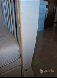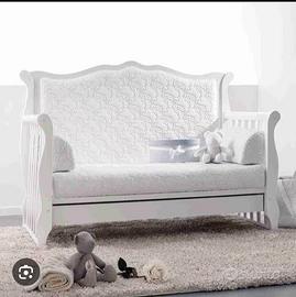Lettino con spondone fisso con ecopelle trapuntata e sponda mobile bloccabile (dotazione di serie).