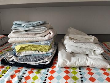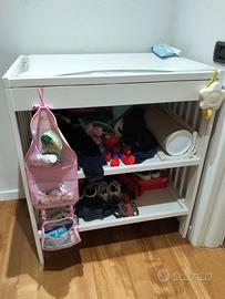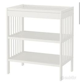 Vendo lettino Ikea con materasso, set lenzuola e piumino con sacco Prenatal, fasciatoio Ikea con materassino, seggiolone Ikea con vassoio e cuscino seduta, cuscino allattamento. Tutto smontato, ritiro a Corsico.