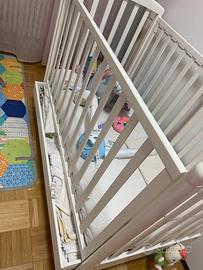 Lettino con spondina che si abbassa e cassetto sotto molto comodo