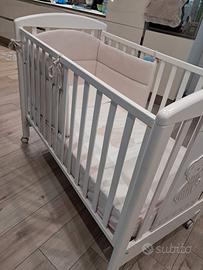 Lettino con materasso cuscino lenzuola e paracolpi in buone condizioni usato pochissimo