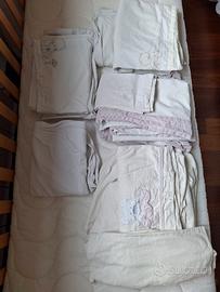 In aggiunta materasso sfoderabile alto 10 cm, piumoncino, cuscino antisoffocamento con 2 federe, coprimaterasso con rinforzo proteggi pipi, 1 completo lenzuola felpate, 3 completi lenzuola, 1 coprimaterasso.