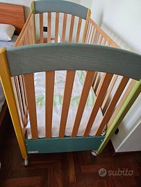 Lettino Foppapedretti con sponda a scomparsa,ampio cassetto e con materasso. Vendo a € 100 .