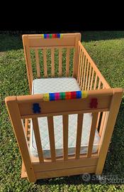 Lettino con un cassetto scorrevole spazioso, con una sponda fissa e una che si puo abbassare rendendo facile sistemare il lettino ha 4 ruote di cui 2 con il freno rendendolo facile da spostare, nel prezzo regalo anche il materassino. Il lettino è già smontato pronto per il ritiro.