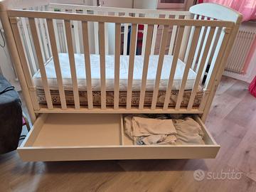 Vendo lettino Foppapedretti usato ma in buone condizioni come da foto. Regalo 2 materassi (di cui uno completamente e facilmente sfoderabile), molto comodi da alternare velocemente in caso di "incidenti". Regalo diversi lenzuolini, una copertina e coprimaterassi.