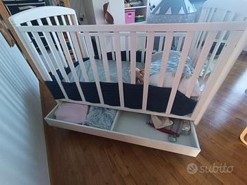 Cassettone inferiore: Ampio cassetto estraibile integrato per riporre biancheria o giocattoli.