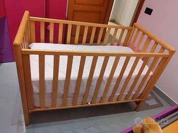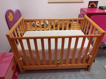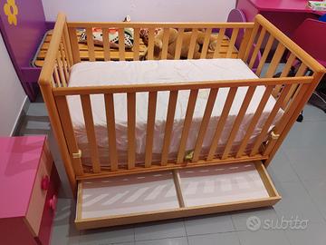 Lettino completo di tre materassi per bambini, dotato di un cassetto sotto la rete.