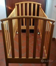 Lettino Foppapedretti in legno, completo di cassetto e rotelline con freno.