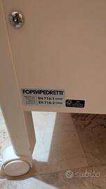 Vendo lettino Foppapedretti Lucy bianco con giraffa + kit completo Cedo lettino in ottime condizioni, usato con cura. Modello pratico e robusto, Foppapedretti Lucy made in Italy. ✅ Struttura in legno bianco con cassettone sotto e ruote con freno ✅ Sponda regolabile in altezza (cresce col bambino) Il prezzo include: · Lettino con manuale di montaggio e garanzia originali · Materasso antisoffocamento (praticamente nuovo) · Sponda letto Ikea (sponda ulteriore per prevedere configurazione senza porta laterale) che può essere usata quando il bimbo (o la bimba) crescono · Si regala anche coprimaterasso e lenzuolo