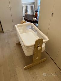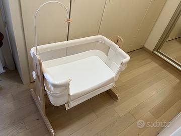 Bellissimo lettino Foppapedretti Mamma&Me; utilizzabile come lettino indipendente o come nextome grazie alla sponda reclinabile.