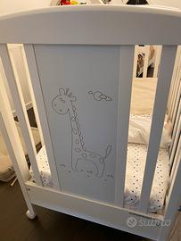 Lettino con spondine sali-scendi e cassettone + materasso in ottimo stato.