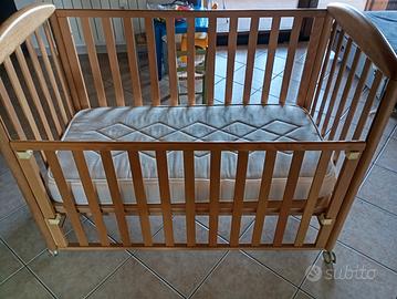 Lettino Foppapedretti mod. Lucy in legno di faggio , progettato per bambini da 0/3 anni con sponda laterale regolabile in altezza , dotato di 4 ruote piroettanti di cui 2 con Freni , include ampio cassetto inferiore estraibile , completo di materasso , le condizioni sono ottime. Dimensioni letto cm 130x70 altezza 100 , dimensioni materasso cm 125x60 spessore 13 , vendo a 110 euro per info 3479751269 Walter Inveruno mi....N.B. il materasso presenta aloni su entrambi i lati come da foto ....il cuscino non è disponibile...