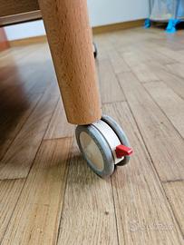Il lettino è provvisto di cassettone inferiore dove conservare le lenzuola e ha una sponda che può essere posizionata anche a metà altezza o completamente abbattuta (il lettino diviene un divano).