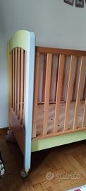lettino ben tenuto totalmente in legno, con ampio cassettone.