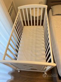 Foppapedretti Lettino con Sponda Regolabile Golosone, Legno di Faggio, Made in Italy, Rete a Doghe di Faggio, Ampio Cassetto, Regolabile a Doppia Altezza, 4 ruote, 131x71x103 cm, Bianco Foppapedretti Materasso per bambini Climatic, Antiacaro, Antibatterico, Antisoffoco, Traspirante, in Fibra Anallergica, Sfoderabile e Lavabile, certificato OEKO-TEX Standard 100, 124x63x12 cm, Bianco PREZZO CON MATERASSO 200€ PREZZO SENZA MATERASSO 170€ Vendo per inutilizzo Prezzo originale del lettino:290€ Prezzo originale del materasso:€100 SOLO CONSEGNA A MANO