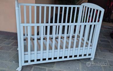 Lettino in legno Foppapedretti con cassettone e sponda abbassabile completo di materassino misure esterne cm. 130 x 70 h. 100, consegna a mano non spedisco.
