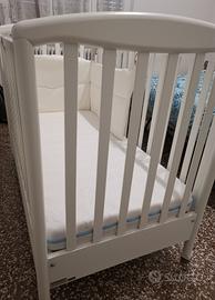 Lettino con sbarre, da un lato è possibile abbassare le sbarre per agevolare la messa a letto.