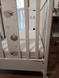 Vendo lettino in legno con sponda regolabile a due altezze, con ampio cassetto inferiore suddiviso in due scomparti, con sistema frenante. Dimensioni 131x71x103h. Si vende con paracolpi e materasso. Usato, ma in ottime condizioni.