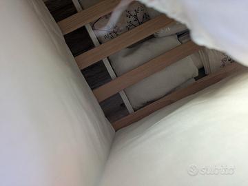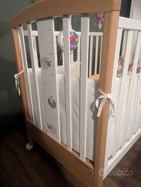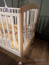 Lettini Foppapedretti Pekos in faggio naturale/bianco + materasso + paracolpi. In ottime condizioni, con spondina regolabile a due altezze.