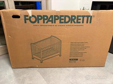 Lettino in legno Foppapedretti, sponda regolabile a due altezze e possibilità di trasformazione in divanetto.