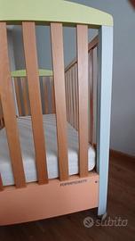PREZZO RIBASSATO A 49€ MATERASSO E PARACOLPI INCLUSI!!! CONSEGNA - anche casa se abitate in provincia di Milano entro 30 minuti di auto da Cusano Milanino, per soli 10€! - altrimenti in loco la sera o i week end! Viene consegnato imballato in semplice cartone. Se venite in auto: presentarsi con un'auto sufficientemente grande e con i sedili posteriori abbassati. I seguenti dettagli tecnici sono stati raccolti con Perplexity: Dimensioni: 131 x 73 x 103 cm (lunghezza x profondità x altezza). Si adatta a materassi standard 70x120/130 cm. Materiale: legno di faggio massiccio, verniciato con colori atossici e 100% made in Italy, per massima sicurezza e durata. Caratteristiche Principali Sponda regolabile a due altezze per facilitare il cambio lenzuola. Rete a doghe regolabile a due posizioni, pratica fin dai primi mesi del neonato. Ampio cassetto inferiore con due scomparti per biancheria e oggetti, più 4 ruote gommate piroettanti (due con freno) per spostarlo facilmente senza graffiare i pavimenti. Cosa lo Rende Unico Il modellol Sorbetto si distingue per il design sobrio, combinando eleganza classica e praticità extra nel cassetto doppio – non sempre presente negli altri – ideale per chi cerca un lettino versatile senza fronzoli. Il lettino viene consegnato smontato e imballato in cartone non originale.