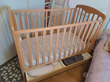 Vendo lettino foppapedretti in legno con materasso e coprimaterasso idrorepellente. Dotato di una sponda che si abbassa e 2 cassetti. Usato pochissimo. Solo consegna a mano