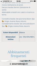 Lettino gemellare modello gemini marca azzurra design acquistato agosto 2020 utilizzato fino a luglio 2022. Ottimo stato ad esclusione di un punto sul retro dove è venuta via la vernice (ci tenevamo aggrappata la giostrina per la notte) di cui allego foto. Se interessati ho anche i paracolpi e il piumone stessa marca uno di colore rosa uno di colore azzurro (prezzo per questi da concordare a parte). Solo titiro a mano. Il lettino è gia smontato. Prezzo 250 euro