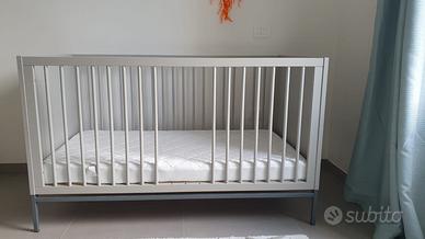 Vendo lettino per bambini Geuther modello Levi, in legno di faggio di alta qualità, colore grigio. ✔ Marca tedesca di fascia alta ✔ Rete regolabile in altezza (2 posizioni) ✔ Struttura solida, stabile e sicura ✔ Design moderno e pulito ✔ Sbarre removibili: possibilità di togliere 3/4 stecche per creare un’apertura, ideale per favorire l’autonomia del bambino ✔ Completo di materasso Il lettino è in ottime condizioni, usato poco. Dimensioni standard circa 1400x70 cm. Già smontato / pronto per il trasporto. Disponibile subito – possibilità di consegna in zona